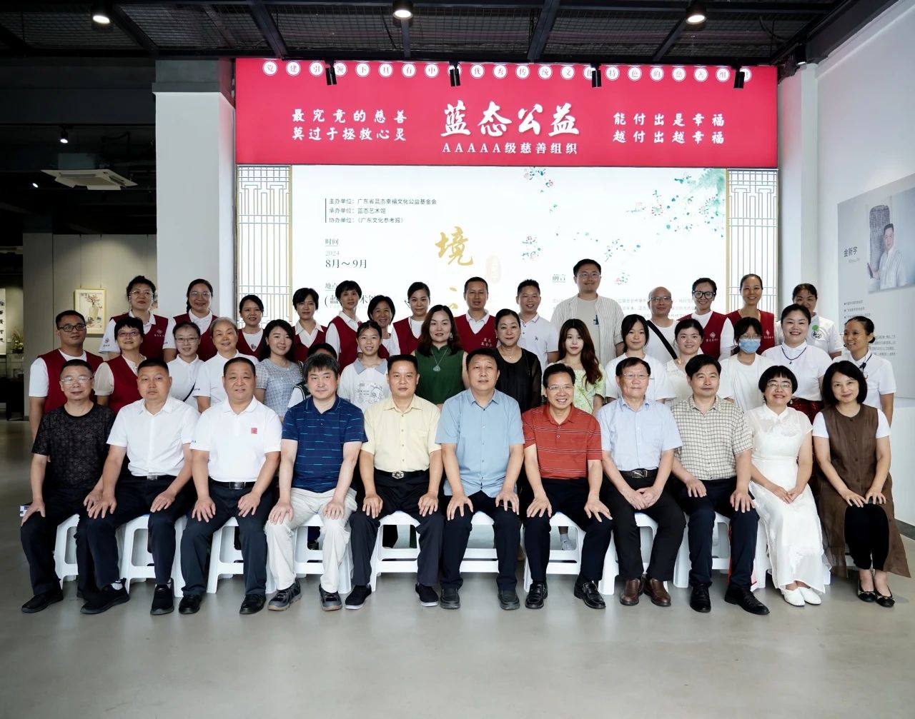 2024年9月8日,台风过后的羊城天朗气清惠风和畅。上午十点,在番禺区石碁镇永善村的蓝态大院内,由广东省蓝态幸福文化公益基金会主办、蓝态艺术馆承办、广东文化参考报协办的“境·心造”金新宇公益捐赠书画作品展开幕式如期举行。出席本次开幕式主要嘉宾有:中国书法家协会会员、广东省美术家协会会员、广东省文史馆艺术中心研究员、广州市青年书法家协会顾问、展览作者金新宇,广东书法院党支部书记、广东书法与文艺研究院副院长范桂觉,广东省沂蒙文化发展促进会常务副会长兼书画院院长徐建韵,广东省沂蒙文化书画院副秘书长兼《沂蒙》会刊执行主编、广州云山情酒业有限公司董事长、越秀区工商联执委施治生,广东文化参考报总监、广东省沂蒙文化书画院副院长王关朝,中国美术家协会会员、广东省美术家协会理事、广州画院画家翟书同,中国著名国画家刘向平,广东省蓝态幸福文化公益基金会党支部书记、理事长张华,广东省蓝态幸福文化公益基金会秘书长范立方,广东省蓝态幸福文化公益基金会理事蔡丽,以及蓝态公益基金会各项目负责人、企业家代表、志愿者代表近百人参加了开幕式。