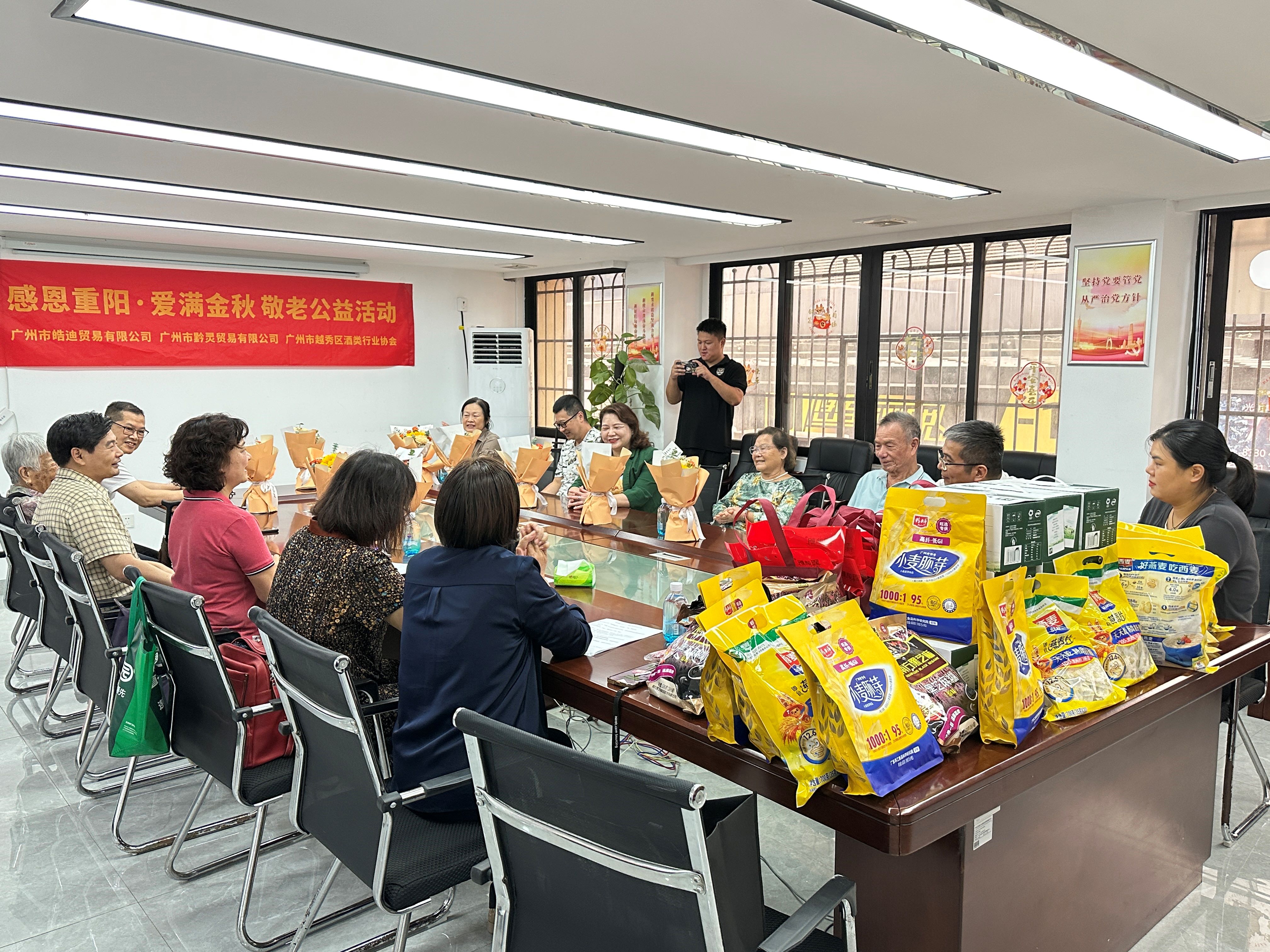 百善孝为先,为更好地传承中华民族的传统美德,营造爱老、敬老、尊老、助老的良好氛围,树立家庭美德观念,10月10日由越秀酒协与广州市皓迪贸易有限公司共同举行的“九九重阳情,温暖满金秋”重阳敬老活动。云山情酒业董事长、广州市越秀区酒类行业协会副会长施治生受邀参加了本次敬老公益活动!