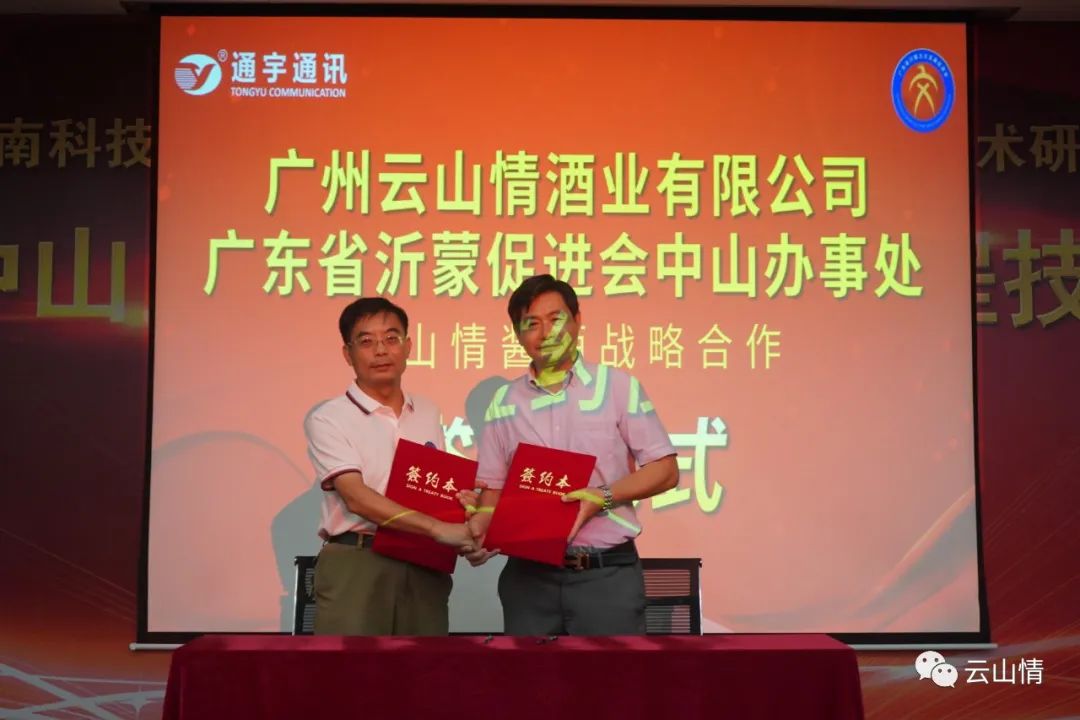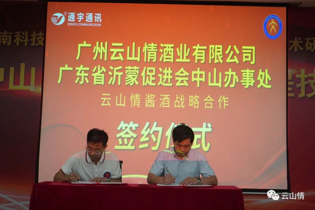 随后由广东省沂蒙文化发展促进会中山办事处与广州云山情酒业有限公司举行了云山情酱酒战略合作签约议式。授权中山办事处负责广东中山市区域云山情酱酒销售和服务。